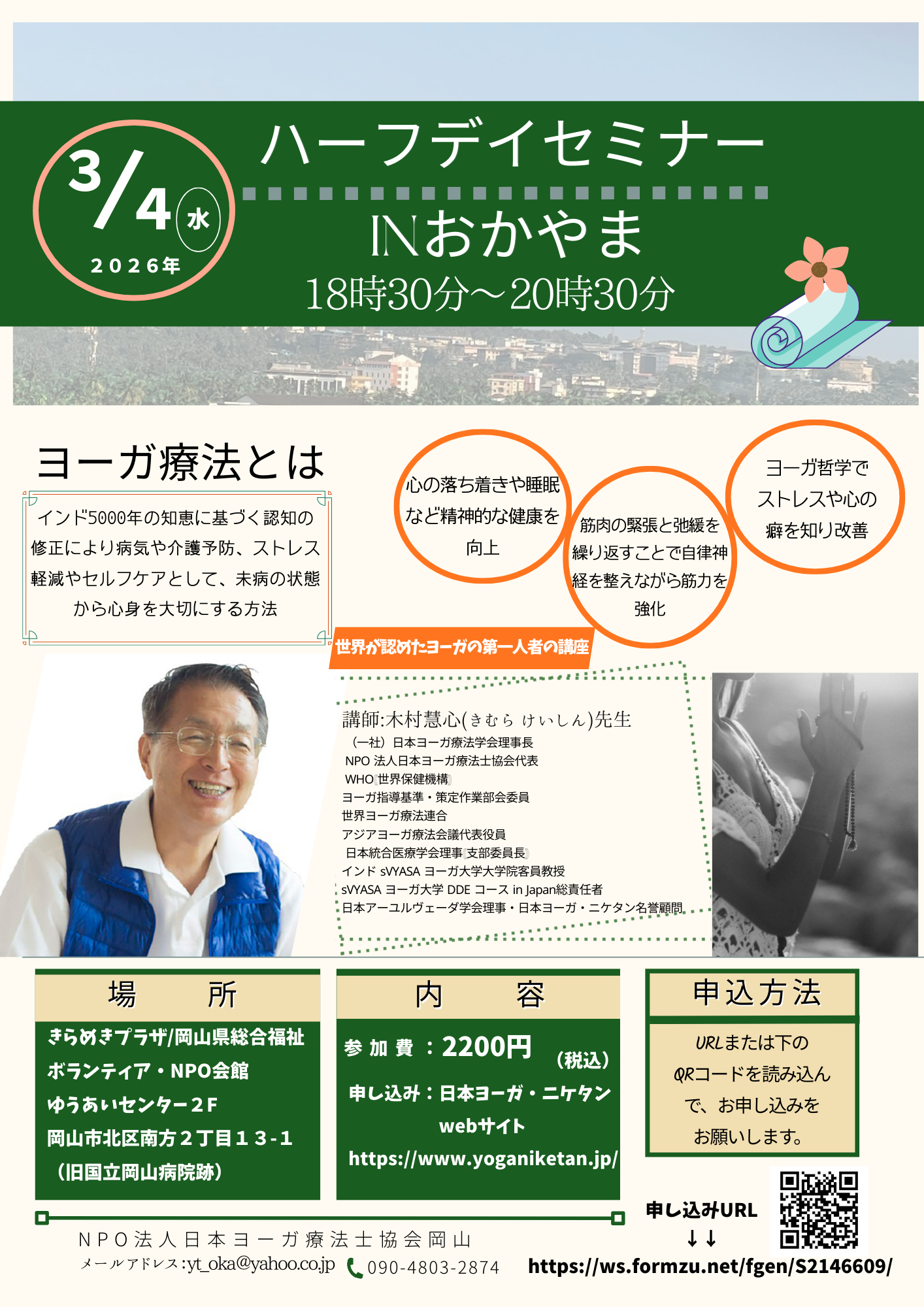 第2クール:日本ヨーガ・ニケタン東京支部くわしくはこちらから